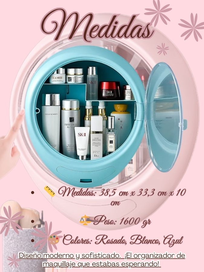 No, este organizador es muy versátil y no solo es adecuado para maquillaje, sino también para almacenar cosméticos, cremas, perfumes, toallas, artículos de papelería y otros artículos de cuidado personal. Puedes usarlo para mantener todo organizado y de fácil acceso en tu baño, tocador, o cualquier otro espacio.