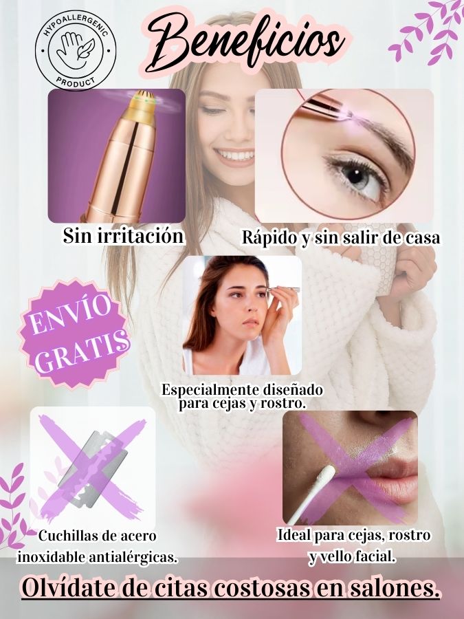 Este dispositivo portátil está diseñado para eliminar los vellos faciales de forma rápida y sin irritar la piel. Su tecnología permite un deslizamiento suave sin dolor, dejándote una piel lisa en segundos.