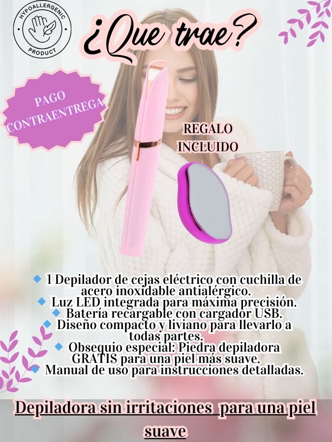 Además del Depilador Removedor de Vellos Faciales , recibirás completamente GRATIS un Depilador de Piernas Piedra en Seco , ideal para una depilación rápida y sin dolor.